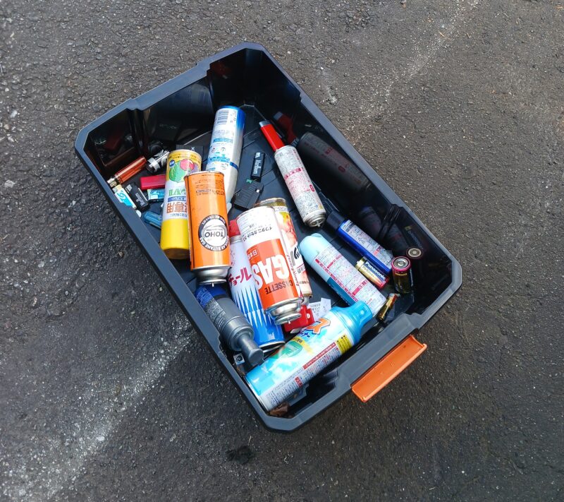 仕分け作業では必須の危険物(ライター、マッチ、ガス缶、電池等)もしっかり選り分けていきます!