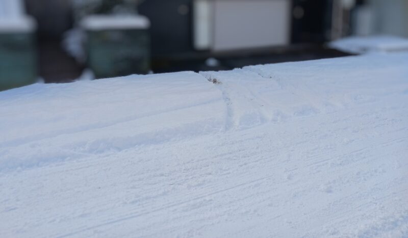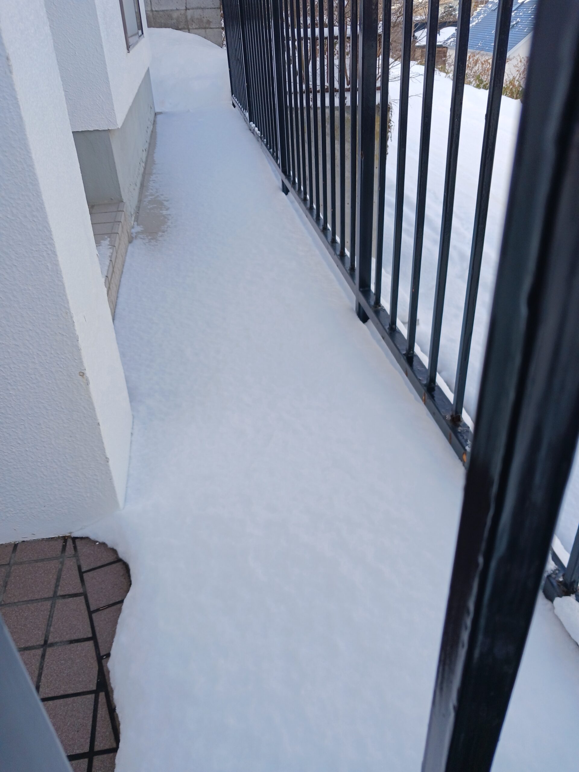頻繁に除雪出来ればいいのですが、積もった雪を踏み固めてしまうと、傾斜の付いた積雪になってしまい、さらに表面が凍ると大変危険な状態になってしまいます(>_<)