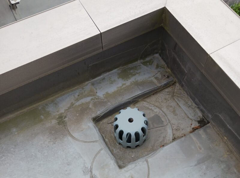 排水ドレンは定期的にチェックしておきたい場所ですが、こちらの建物はご自身でチェックするには少し面倒事かもしれません。