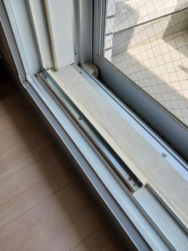 部材を窓枠に固定して、そこに付属の補助金具を取り付けます。
