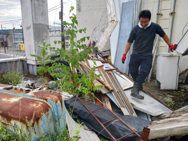 私は基本的に中二階のテラス部と屋上の産廃物の撤去搬出を担当させていただきましたが、長年の放置された多量の廃棄物でなかなかパンチの効いた現場でした。笑