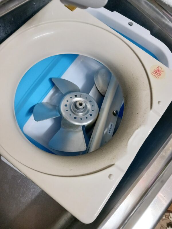 今回ご連絡いただいた際に「換気扇が動かなくなって、綺麗に清掃したら動く様になるかもしれないので、清掃してほしい」との事だったので、換気扇が油汚れで固着してそれが原因かも?と、思い現場に向かいました。