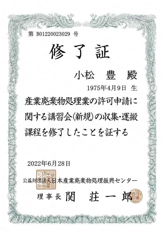 マニフェストの対応含め、適正な廃棄物の処理をお約束します。
