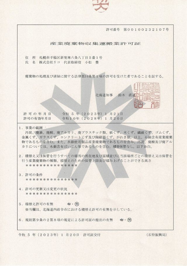産業廃棄物の収集運搬許可を取得済みの株式会社リコにお任せください